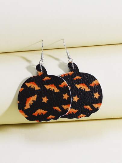Pendientes largos Halloween con patrón de murciélago calabaza - Multicolor - Añade 1