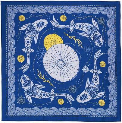 ¡RecomendadoBandana - Koi - Pañuelo boho floral extra suave 100% algodón, pañuelos para la cabeza, 55 x 55 cm, unisex¡Top de Temporada - Azul - Añade 6