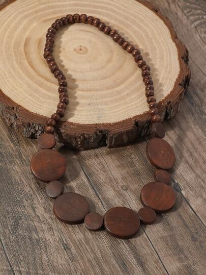 1 pieza Collar de cuentas de madera vintage hecho a mano con elástico, collar de cadena de suéter de capa única para hombres y mujeres - Café integral - Añade 10