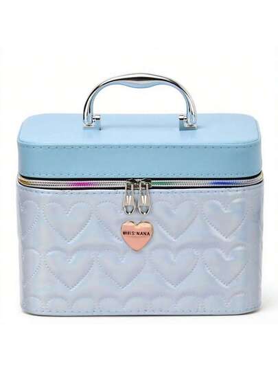 Estuche de Maquillaje con Relieve de Corazón – Diseño Brillante, Varios Colores Modernos - Azul - Añade 7