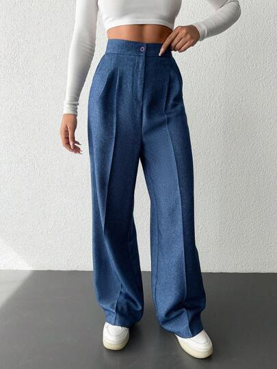 RueChic Pantalones de cintura alta y pierna ancha - Azul - Añade 5
