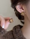 2 piezas Pendientes Maillard, Pendientes de color beige y dorado para mujeres, diseño único, estilo francés retro, pendientes elegantes de color cálido