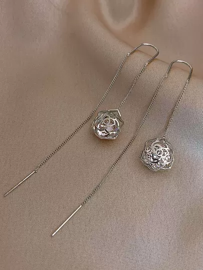 Andkiss Pendientes de enhebrador con abertura con diseño de flor - Plateado - Añade 1