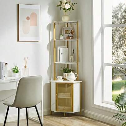 gabinete de oficinaMU:4LIFE Gabinete de Bar Multiusos con Estantes Atlos Soporte para Copas y  de Malla Mueble para Licores bidas Liero y De Exibicion para Sala Cocina o Oficina Marmol Blancogabinete de oficina - Mrmol blanco - Añade 5