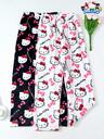 Sanrio 2 piezas Pantalones de pijama de franela suave, opaca y cómoda con diseño de Hello Kitty para mujer, para uso en casa y tiempo libre, ropa de otoño/invierno, cálida