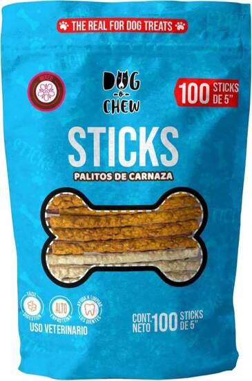 DOG-O-CHEW | Premios para Perro | Palitos de Carnaza | Sabor Mixto | 100% Natural | NO Almidones | Carnazas para Perro | 100 pz | 5" (13 cm) | Alto en Proteína | Fácil Digestión | Sin Conservadores - Blanco - Añade 1