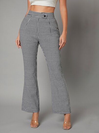 Pantalones acampanados con estampado de pata de gallo - Blanco y Negro - Añade 5