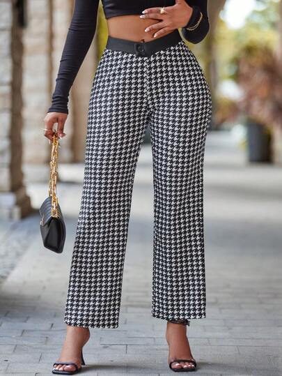 SHEIN Slayr Pantalones con estampado de pata de gallo - Negro - Añade 5