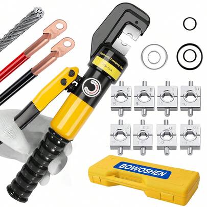 Pinza Hidráulica 6 Toneladas Con 8 Pares Dados BOWOSHEN Ponchadora Hidráulica Herramienta De Crimpado De Mano Hidráulica De Cable De Terminal Eléctrico - Amarillo - Añade 1