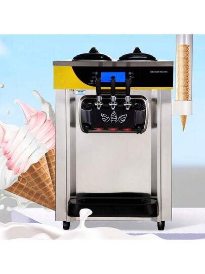 Máquina para hacer helados comercial, rendimiento de 22-30 L/H, máquina de servicio suave para encimera de 2200 W con tolva de 2 x 6 L, panel LCD de 2 L, alarma de escasez de inflado, máquina para hacer yogur helado para restaurante Snack Bar, plata - 22-30 L/H - Añade 3