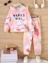Set de 2 piezas: Sudadera con capucha de manga larga con estampado de cuadros de mosaico + Pantalones de parche con estampado de cuadros de mosaico y unicolor, para niños, otoño/invierno