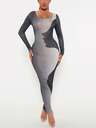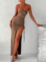 1 pieza Vestido de moda sexy con diseño de escote abierto, fruncido y abertura frontal para mujer