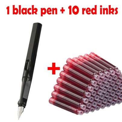 Juego de pluma estilográfica de 11 Uds., tinta reemplazable de 0,38mm para escritura suave, papelería de oficina multifuncional y suministros de aprendizaje UGVD - Negro Rojo - Añade 1