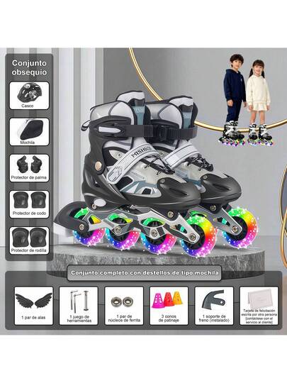 Patines en línea para hombres y mujeres, para principiantes, juego completo, talla ajustable - Negro - Añade 4