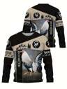 Camiseta de manga larga con estampado gráfico del océano para hombres, de secado rápido y cuello redondo, adecuada para pesca, senderismo y otras actividades al aire libre, otoño
