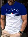 Camiseta de hombre LHEURYSTIC con estampado digital 3D de bloqueo de color - Gráfico "MILANO ITALIA", cuello redondo casual y deportivo de manga corta en negro y blanco, mezcla de poliéster elástico, lavable a máquina - Regalo ideal para Año Nuevo