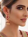 Set de 3 piezas de joyería de lujo con rhinestones, pendientes tipo jhumka con elegante borla de perlas falsas/collar estilo retro, adecuado para novias, bodas o regalos de joyería para fiestas