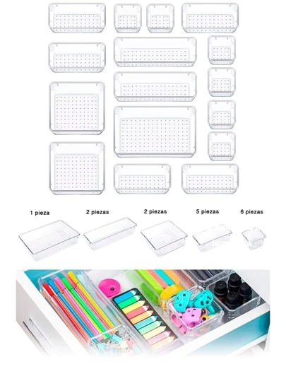 Brandtrendy 16 piezas de organizadores de cajones, bandejas para organizar y clasificar accesorios de cocina, maquillaje, uso personal, antideslizantes, apilables y libres de materiales tóxicos, almacenamiento para vuelta al colegio y dormitorio - transparente - Añade 3