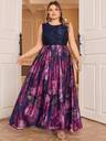 Vestido de noche con estampado floral, cuello corazón y mangas farol, diseño elegante de manga larga para fiesta de graduación, cena o boda - tallas grandes
