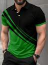 Camisa polo de manga larga con estampado de rayas de contraste y parches para hombre, otoño