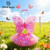 Regalo para el Día del Niño, Regalo de cumpleaños para niñas, Regalo de Navidad, Alas de mariposa para niñas, incluye falda, varita, diadema y alas con luces, Alas de mariposa luminosas para niñas (accesorio para la espalda), juguete brillante para niños: Varita mágica de hada maravillosa / Varita de hada de las flores, conjunto de 4 piezas, traje para actuaciones en el Día del Niño, serie de mariposas, alas de ángel cartoon y adorables, juego de 4 piezas.#5 Más vendidos