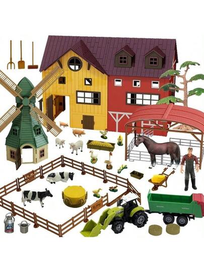 - Juego de cifras de animales de granja, 140 piezas, juguete de granero, establo, tractor de remolque, molino de viento, valla de granjero, juego para nios y nias de 3 a aos - Juego de granja - Añade 1