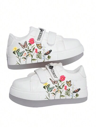 Zapatillas casuales cómodas con suela blanda y cierre de , con estampado floral, para niños, para primavera/otoño - Blanco - Añade 5