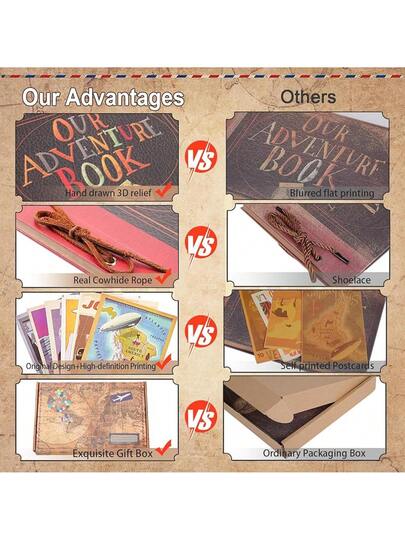 Album De Fotos 11,9 X 7,6 Pulgadas 80 PáGinas, Scrapbook Adventure Book VersióN De PelíCula De Portada Dura Con Letras En Relieve Retro 3d,Aniversario Novios,Regalos Para Mujer - Libro de aventuras de 11 pulgadas a - Añade 6