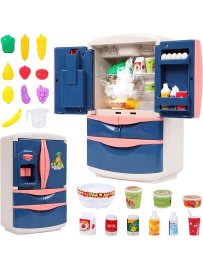 Refrigerador Juguete con Dispensador de Hielo, Frigorífico Juguete para Niños con 30 Accesorios, Regalo de Cumpleaños y Navidad - 1 - Añade 3