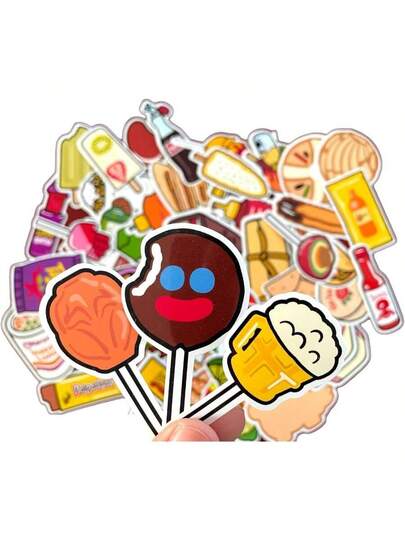 Mexican Food Vinyl Stickers, Snacks and Candy Stickers, Resistant, Set of 60, White - Blanco - Añade 4