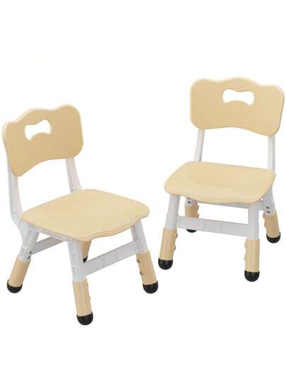 Silla Ajustable para niños (2 Piezas), Silla de 3 Niveles de Altura Ajustable, Silla de plástico para Interiores y Exteriores, para niños de 2 a 8 años de Edad, Familia, Escuela, hogar - Beis - Añade 7