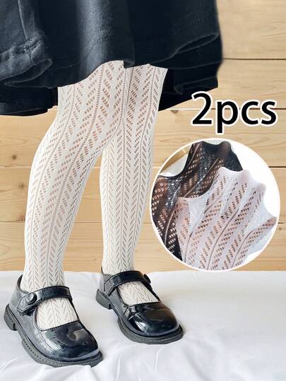 2 pares de pantis de malla con jacquard en forma de V para niñas, adecuados para primavera/verano - Multicolor - Añade 8
