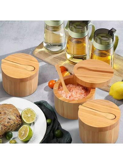 Frasco de especias para la cocina con tapa magnética giratoria, caja de condimentos de madera maciza, recipiente de condimentos doméstico - Albaricoque - Añade 3