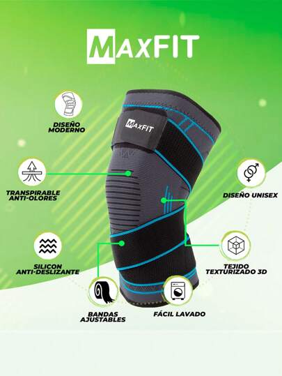 MAXFIT SPORTS Rodillera Deportiva De Compresion Con Cintas Maxfit Hx936 - Azul - Añade 6