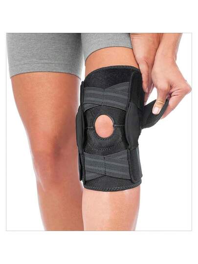 Sports Medicine - Rodillera ajustable con bisagras, color negro y gris - Negro - Añade 1