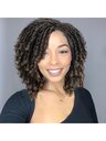 Peluca trenzada para mujeres, peluca trenzada sintética de encaje completo con cola de caballo rizada y moño afro (negro natural)