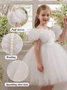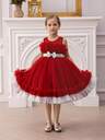 Vestido de fiesta elegante para niñas con parches de malla, decorado con cuentas y moño, adecuado para cumpleaños, fiestas, banquetes y otras ocasiones formales