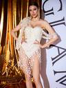 Vestido Formal De Corte De Hombro Frío Con Cola De Sirena Y Lentejuelas, Adornado Con Dobladillo De Volantes Y Abertura Alta En El Muslo