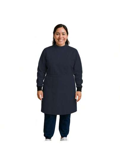 Bata Medica Antifluidos Unitalla marsupial puño con pasador de pulgar fresca suave cordones ajustables - Azul Marino - Añade 1