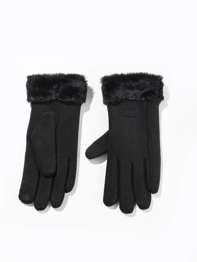 Guantes con diseño de etiqueta en contraste mullido - Negro - Añade 1