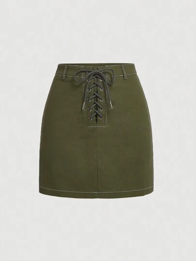 SHEIN MOD Falda con cordón delantero - Verde militar - Añade 3