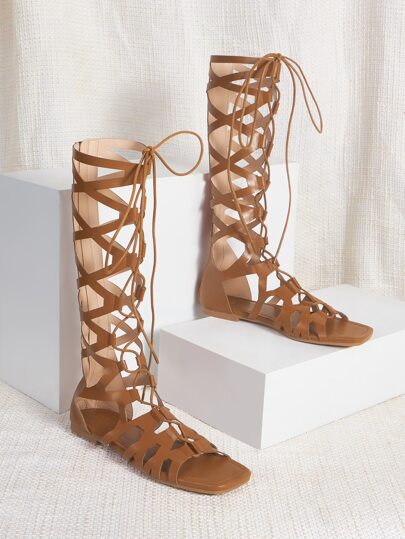 Sandalias de gladiador con cordón delantero - Marrón - Añade 4