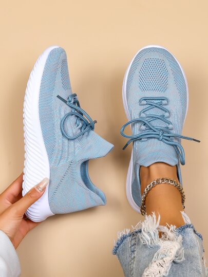 Zapatillas con cordones Zapatillas para correr en carretera de color sólido para mujer - Neblina azul - Añade 1