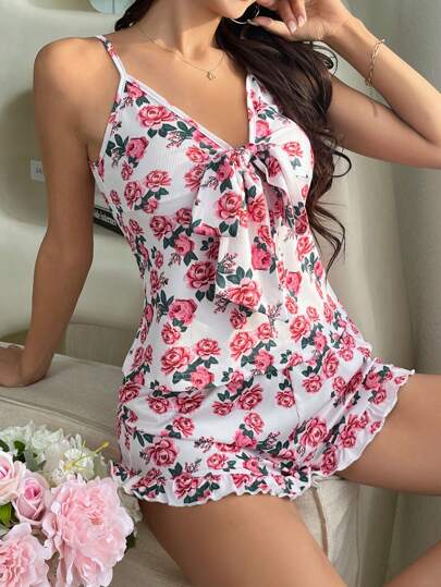 Conjunto De Pijama De Flores Impresas Para Mujeres - Multicolor - Añade 4