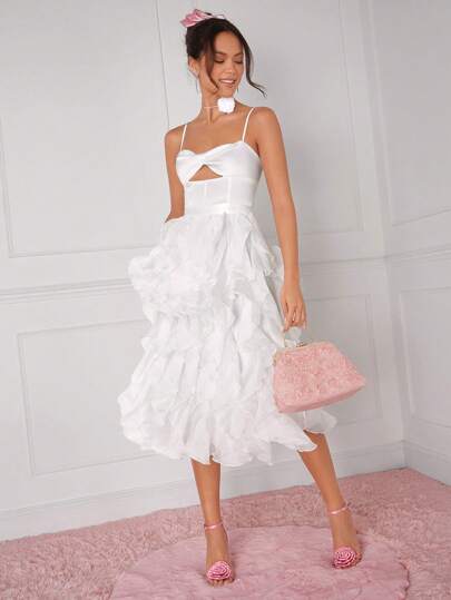 Enchnt Vestido De Tirantes De Múltiples Capas Oscilantes Hueco Para Dama - Blanco - Añade 1