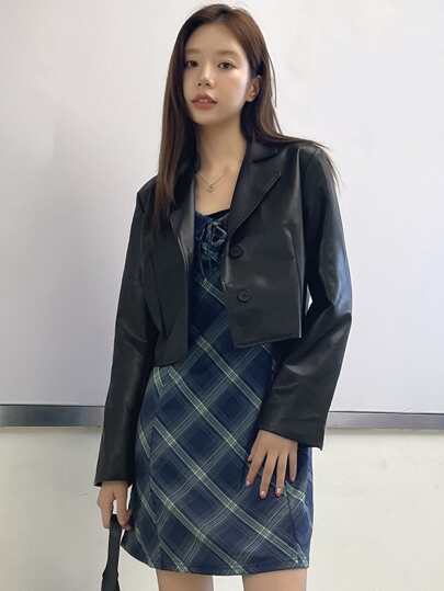 DAZY Cazadora corta de cuello con solapa PU - Negro - Añade 10