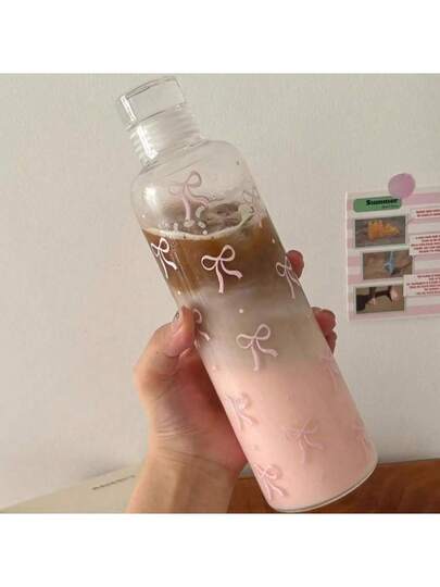 Botella de agua de plástico de gran capacidad con estampado de lazo y escala de medición, adecuada para la hidratación diaria - Multicolor - Añade 1