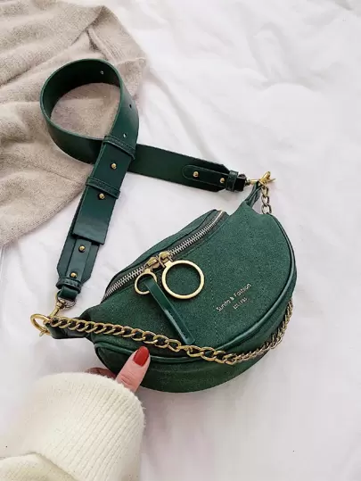 Bolso de pecho casual de diseño simple de unicolor para mujeres, accesorio de a juego con todo con acabado mate elegante para otoño/invierno - Verde - Añade 3