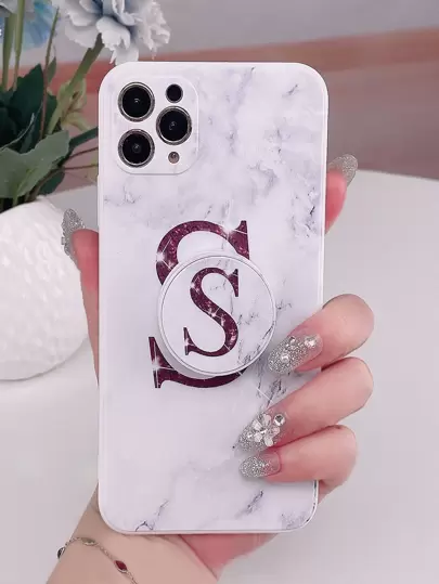 Funda para móvil con estampado de letra con agarre de teléfono sobresaliente - Multicolor - Añade 5