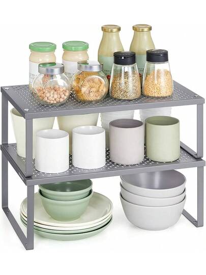 SONGMICS Especiero, Estante para Especias, Organizador para Armarios, Apilable, Ampliable, Juego de 2 Estantes Metálicos, Plata MKCS401G01 - Plata - Añade 1